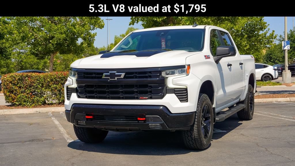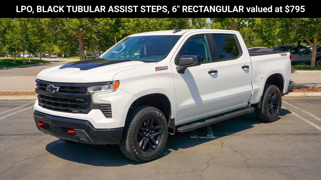 Summit White 2023 Chevrolet Silverado 1500 LT Trail Boss 4D Crew Cab EcoTec3 5.3L V8 15/18 City/Highway MPG